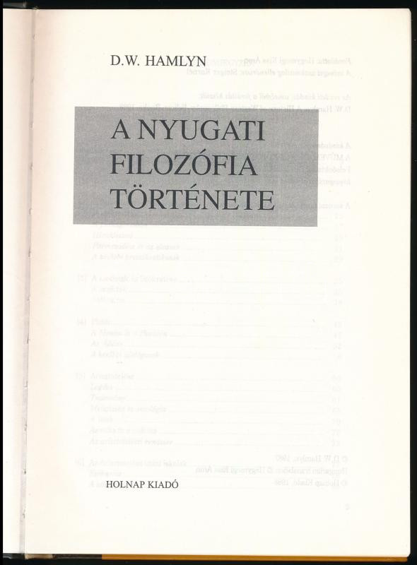 D. W. Hamlyn: A nyugati filozófia története. Ford.: Hegymegi Kiss Áron. Bp., 1998, Holnap. Kiadói kartonált papírkötés.