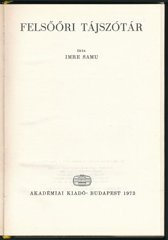 https://www.darabanth.com/en/514-Auction-philately-postcards-numismatics-artwork-books-colletibles-jewelry/515.0/Books/Books-Social-sciences~624/Imre-Samu-Felsoori-tajszotar-Bp-1973-Akademiai-Kiadoi-egeszvaszon-kotes-papir-ve~II3439118