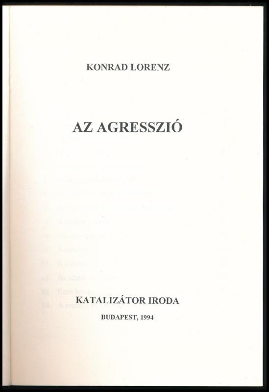 Konrad Lorenz: Az Agresszió. Bp., 1994, Katalizátor Iroda. Kiadói papÃrkötés. +