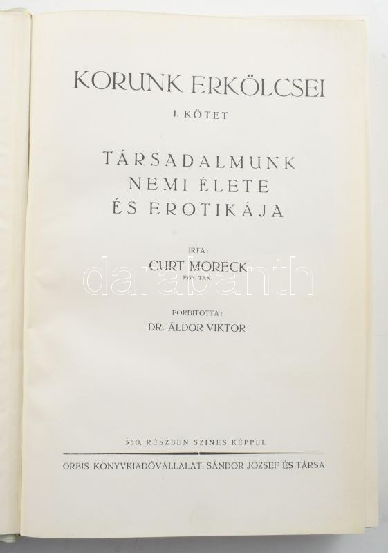 Moreck, [Kurt] Curt: Társadalmunk nemi élete és erotikája. Korunk erkö... https://www.darabanth.com/en/514-Auction-philately-postcards-numismatics-artwork-books-colletibles-jewelry/515.0/Books/Books-Social-sciences~624/Moreck-Kurt-Curt-Tarsadalmunk-nemi-elete-es-erotikaja-Korunk-erkolcsei-I-kot-Unicus-t~II3479200