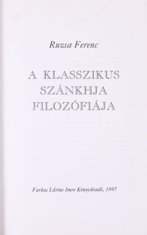 Ruzsa Ferenc: A klasszikus szánkhja filozófia. Farkas Lőrinc Imre Kiadó, 1997. Kiadói papírkötés
