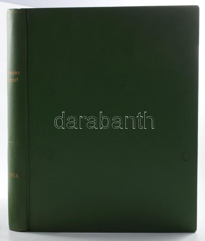 1952-1954 A Képes Sport teljes évfolyama: I. évf. 1-33. sz., 1954. május 18. - december 28. + Diadal Helsinkiben c. olimpiai kiadvány, egy kötetben. Egészvászon-kötésben, néhány lapon kivágásból eredő hiánnyal.
