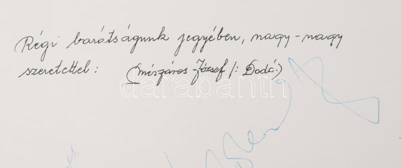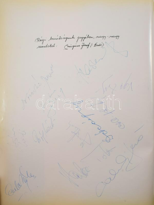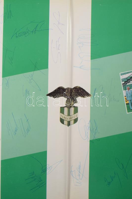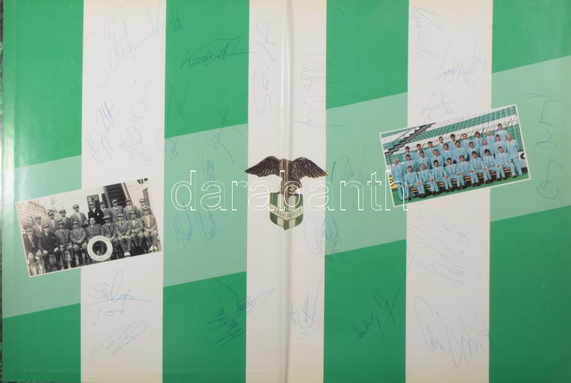Benne Mészáros József ("Dodó") (1923-1997) labdarúgó, edző, az FTC Baráti Köre elnökének dedikációjával, valamint számos további, az FTC-hez kapcsolódó személy és labdarúgó aláírásával, köztük Dalnoki Jenő, Dékány Ferenc, Kecskés Zoltán, Lisztes Krisztián, Nagy Zsolt és mások (összesen 35 db). A címlapon a szerző, Nagy Béla (1944-2006) sportújságíró, Fradi-történész aláírásával.