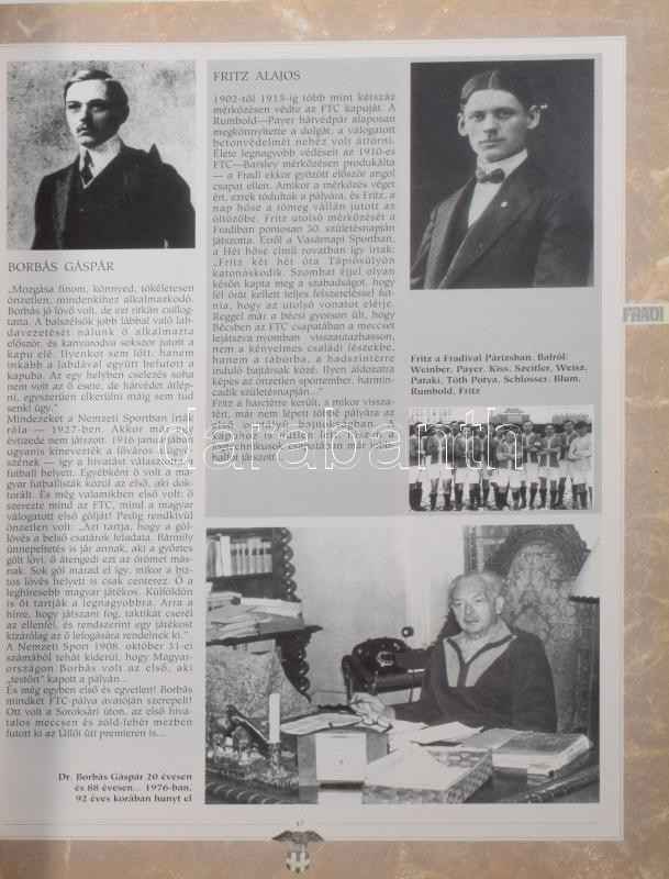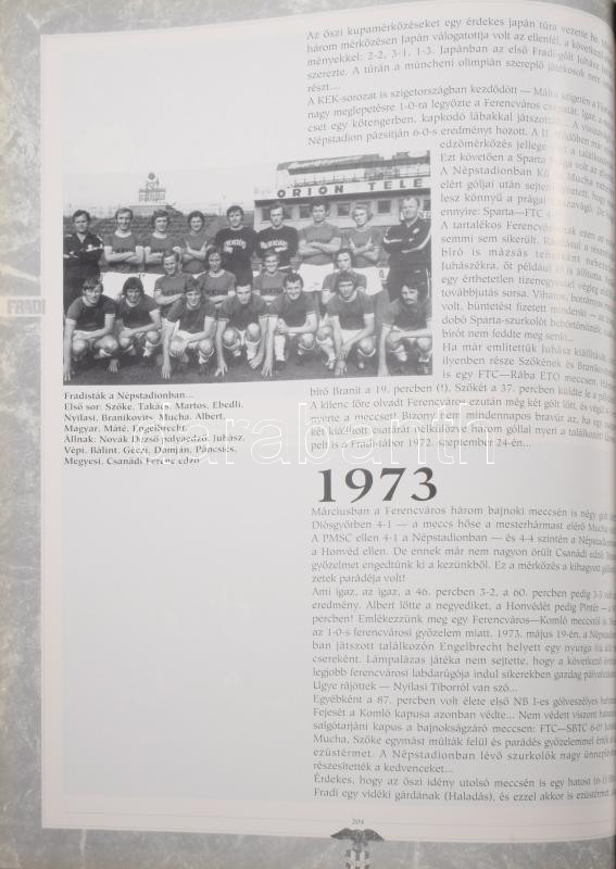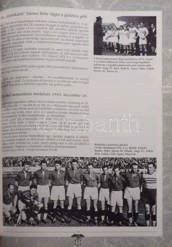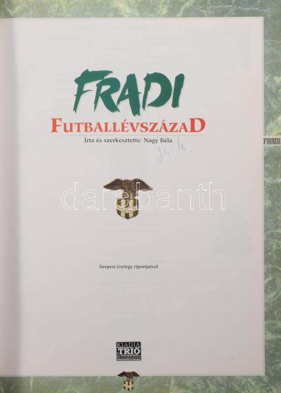 Nagy Béla: Fradi futballévszázad. Írta és szerk.: - - . Szepesi György riportjaival. Bp., 1994, Trio, 288+(16) p. Első kiadás. Gazdag képanyaggal illusztrálva. Kiadói kartonált papírkötés.