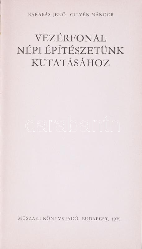 Barabás Jenő - Gilyén Nándor: Vezérfonal népi építészetünk kutatásához. Bp., 1979, Műszaki Könyvkiadó. Kiadói egészvászon-kötés + A határainkon kívüli magyar néprajzi kutatások. Az 1982. november 1920-án Debrecenben, a Déri Múzeumban tartott országos konferencia anyaga. Szerk.: Máténé Szabó Mária Rózsa. Bp., 1984, Tudományos Ismeretterjesztő Vállalat.