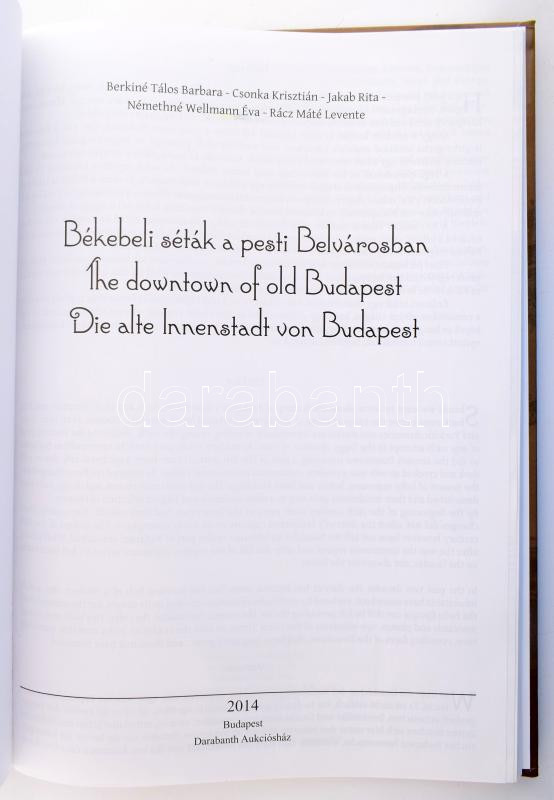 Berkiné-Csonka-Jakab-Némethné-Rácz: Békebeli séták a pesti Belvárosban / The downtown of old Budapest. Bp., 2014. Darabanth. Számos képpel és a Belváros történelmi utcanévjegyzékével. Kiadói kartonált papírkötésben Új állapotban.