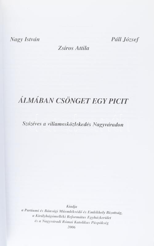 Nagy István- Páll József -Zsíros Attila Álmában csönget egy picit - Százéves a villamosközlekedés Nagyváradon Nagyvárad, 2006. Partiumi és Bánsági műemlékvédő Bizottság. 155p Kiadói papírkötésben, gazdagon illusztrált.