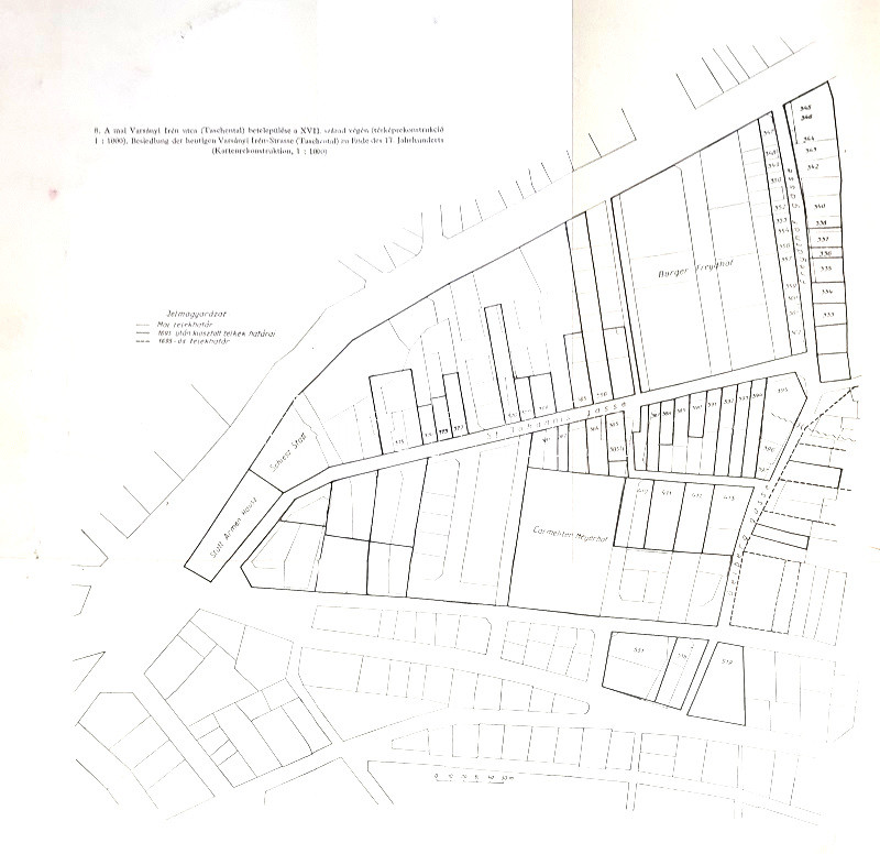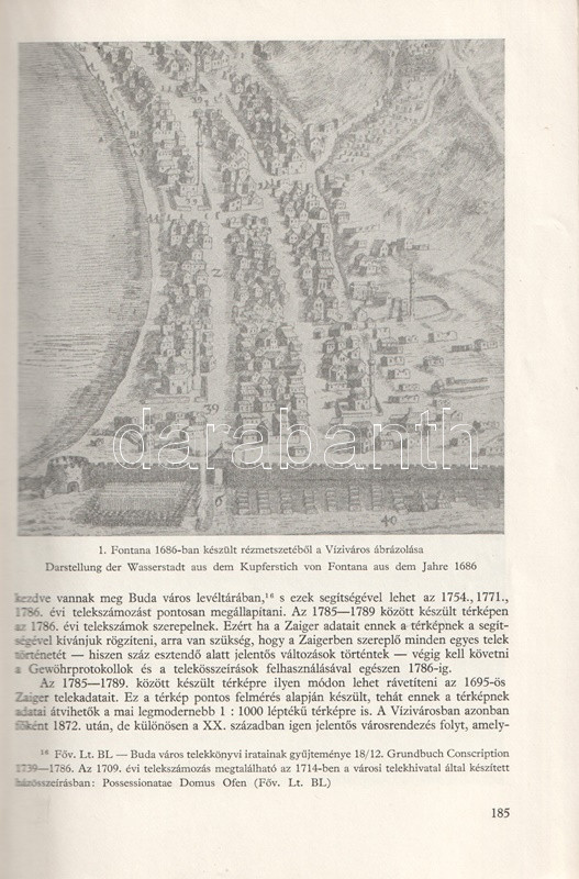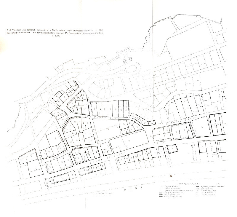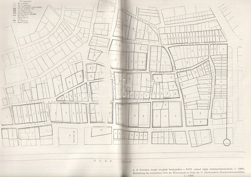 Nagy Lajos helytörténész egész oldalas térképvázlatokkal és látképekkel illusztrált történeti urbanisztikai tanulmánya a Víziváros beépültségét vizsgálja a XVII. század utolsó éveiben.