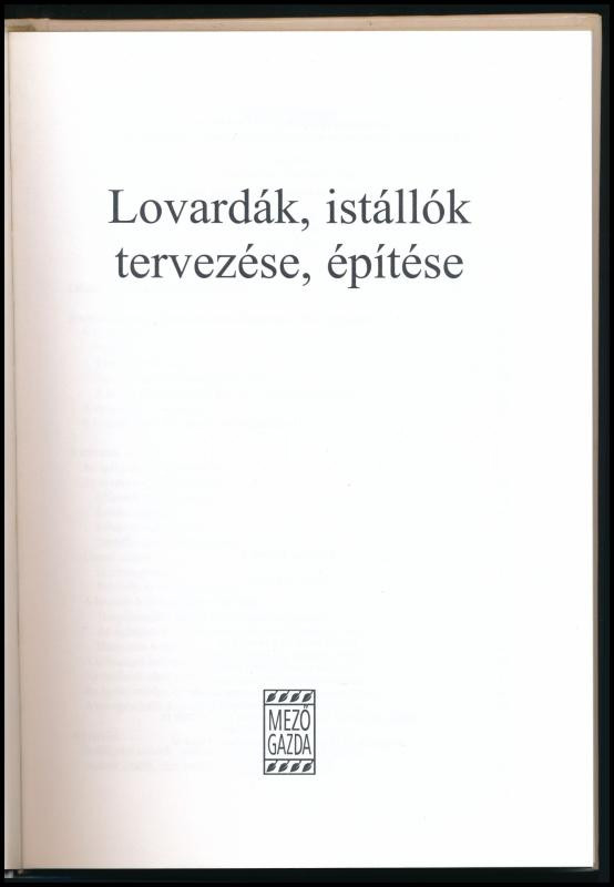 Lovardák, istállók tervezése, építése. Ford.: Agócs Mónika, Radnai Imre. Lovasakadémia 9. Bp., [2003], Mezőgazda, 137+[3] p. Kiadói kartonált papírkötés.