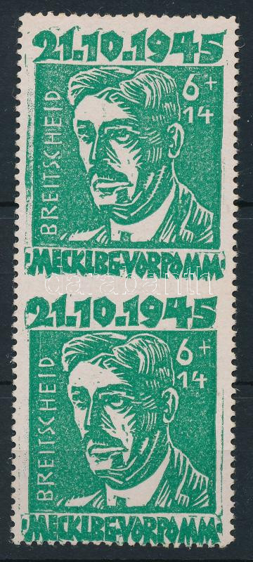 1945 Mi 20a függőleges pár, középen fogazatlan / vertical pair, imperforate in the middle