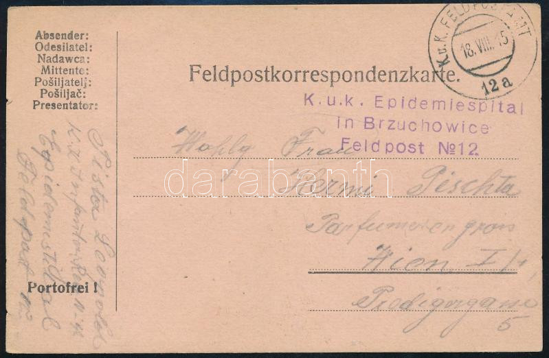 1915 Tábori posta levelezőlap "K.u.k. Epidemiespital in Brzuchowice" + "FP 12a"