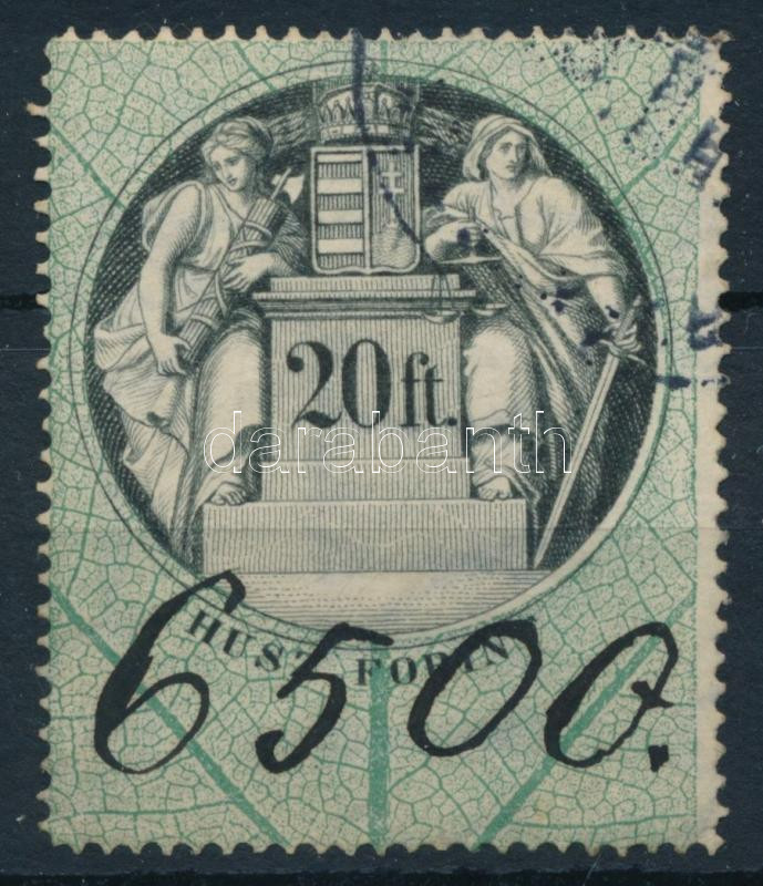 https://www.darabanth.com/en/514-Auction-philately-postcards-numismatics-artwork-books-colletibles-jewelry/515.0/Hungarian-philately-and-postal-history/Document-Stamps~98/1876-20Ft-illetekbelyeg-vastag-papir-30-000~II3414242