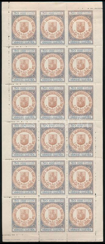 1902 Zalavármegye Zalaegerszeg Rend. Tan. Város Tanácsa 50 arany fillér városi illetékbélyeg 18-as tömbben. Rendkívül ritka!
