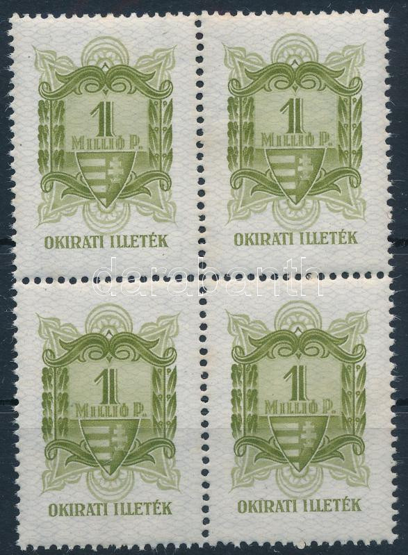 1945 1 millió P okirati illetékbélyeg négyestömb (320.000) / fiscal st...