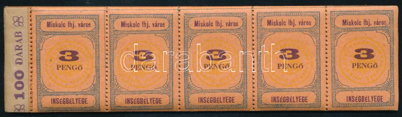 Miskolc inségbélyeg 3P 16 db ötöscsík füzetben