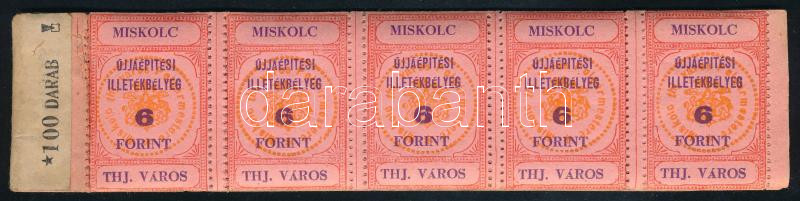 Miskolc újjáépítési illetékbélyeg 6Ft 10 db ötöscsík füzetben