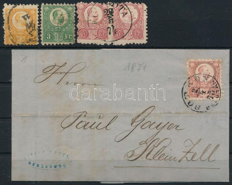 1871-1873 Réznyomat 2kr, 3kr + 5kr pár + levél "SOPRON / DÉLUTÁN"