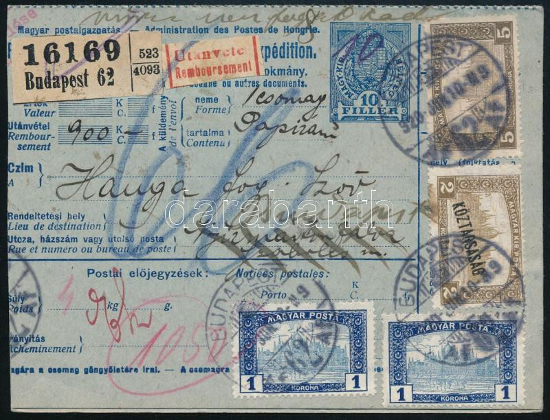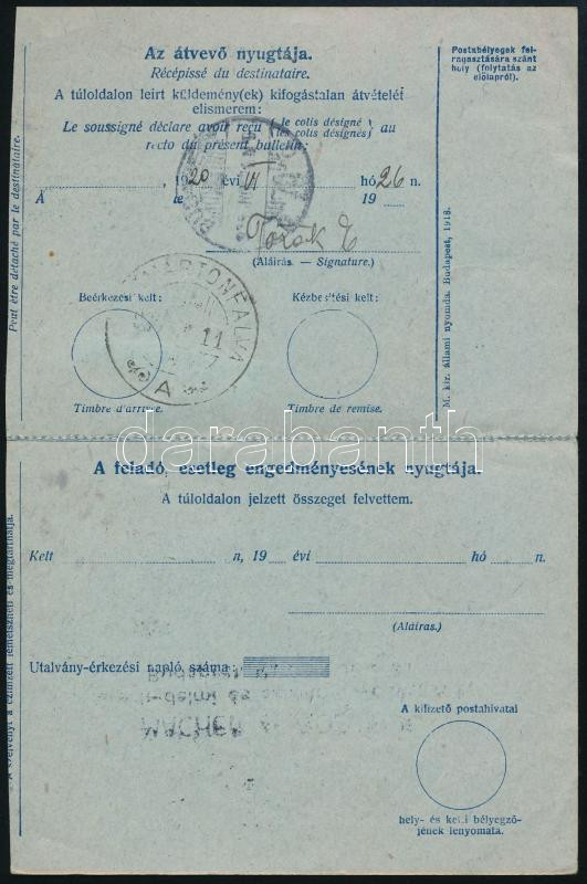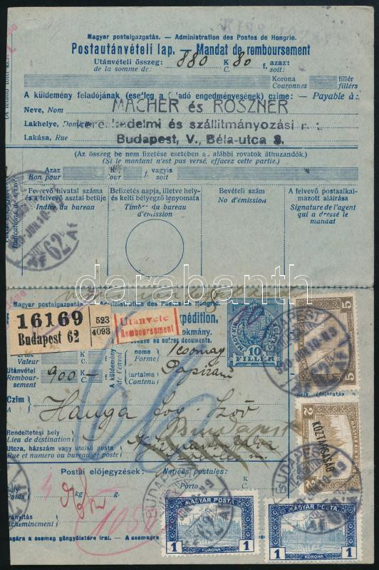 https://www.darabanth.com/en/514-Auction-philately-postcards-numismatics-artwork-books-colletibles-jewelry/515.0/Hungarian-philately-and-postal-history/Inflation-period-of-Korona~51/1920-Utanvetes-csomagszallito-az-utanveteli-lappal-9K-bermentesitessel~II3440175