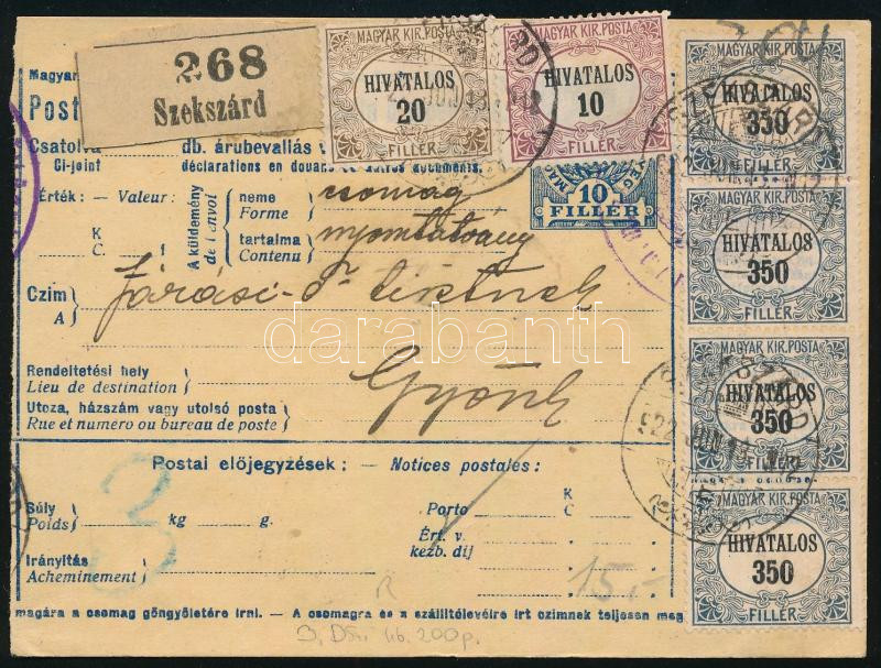 1922 Csomagszállító 9 db Hivatalos bélyeggel "SZEKSZÁRD"