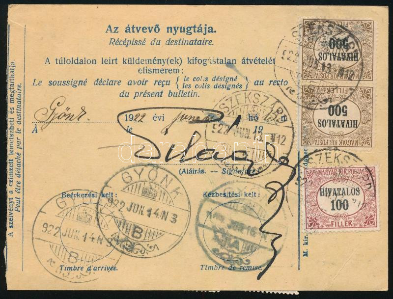 https://www.darabanth.com/en/514-Auction-philately-postcards-numismatics-artwork-books-colletibles-jewelry/515.0/Hungarian-philately-and-postal-history/Inflation-period-of-Korona~51/1922-Csomagszallito-9-db-Hivatalos-belyeggel-SZEKSZARD~II3479927