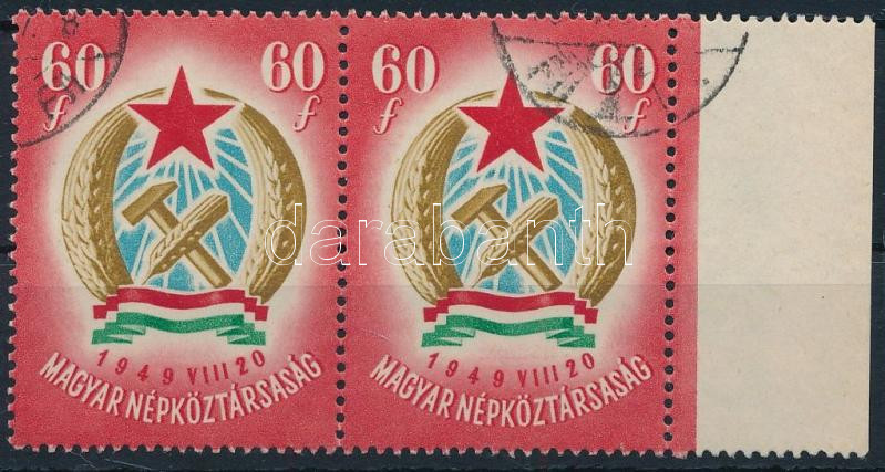1949 Alkotmány 60f ívszéli pár, makkos vízjel az ívszélen