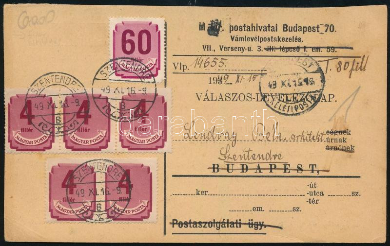 https://www.darabanth.com/en/514-Auction-philately-postcards-numismatics-artwork-books-colletibles-jewelry/515.0/Hungarian-philately-and-postal-history/Issues-between-1946-1956~57/1949-Levelezolap-6-db-Porto-belyeggel~II3479932