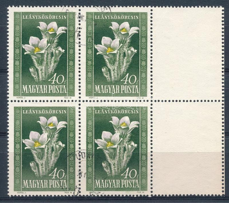 1950 Virág (I.) 40f 4-es tömb jobb oldalon két üres mezővel
