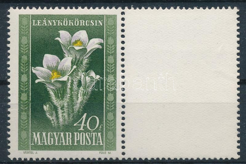 https://www.darabanth.com/en/514-Auction-philately-postcards-numismatics-artwork-books-colletibles-jewelry/515.0/Hungarian-philately-and-postal-history/Issues-between-1946-1956~57/1950-Virag-I-40f-jobb-oldali-ures-mezovel~II3476501