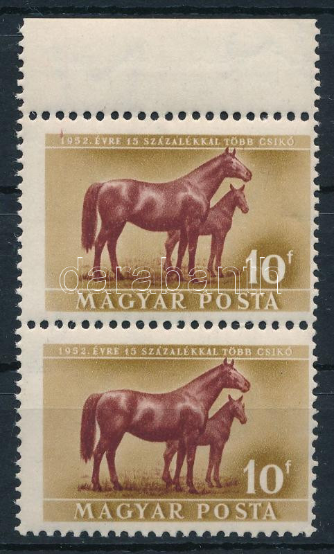 https://www.darabanth.com/en/514-Auction-philately-postcards-numismatics-artwork-books-colletibles-jewelry/515.0/Hungarian-philately-and-postal-history/Issues-between-1946-1956~57/1951-Haziallatok-10f-ivszeli-par-felso-belyegen-kis-festek-csik-az-evszamnal~II3479845