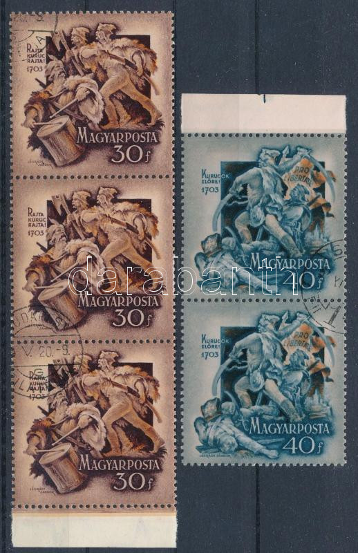 1953 II. Rákóczi Ferenc 30f hármascsík + 40f pár ferdén visszaforraszt...