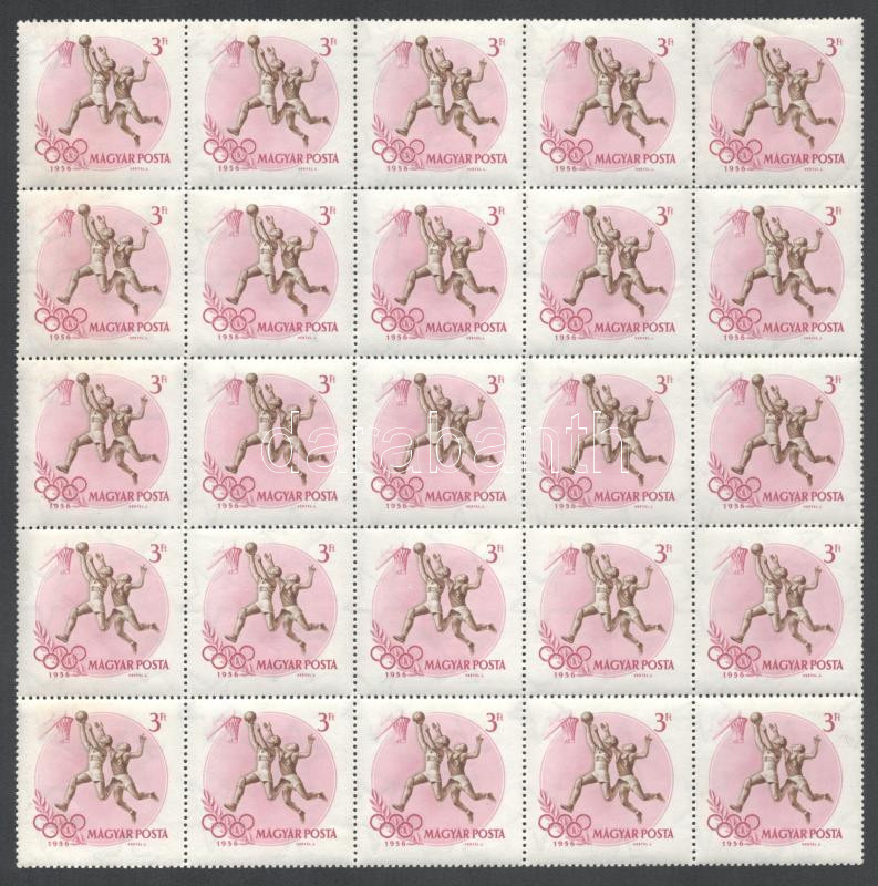 1956 Olimpia (II.) Melbourne 3Ft értéke, 4 db 25-ös ívdarabban (50.000)