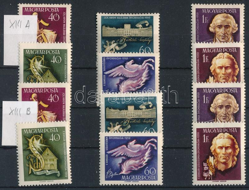https://www.darabanth.com/en/514-Auction-philately-postcards-numismatics-artwork-books-colletibles-jewelry/515.0/Hungarian-philately-and-postal-history/Issues-between-1957-1969~59/1959-Haydn-Schiller-XIII-A-es-XIII-B-vizjelu-sor~II3481658