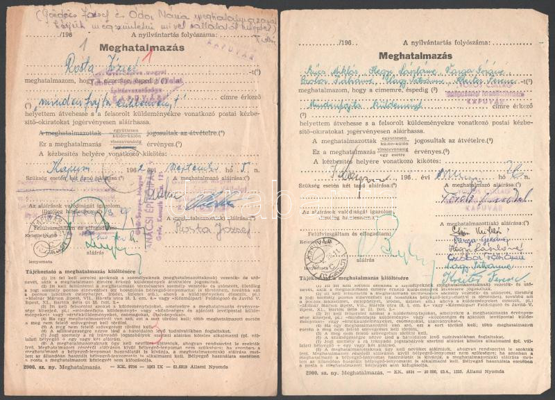 1962-1966 2 db Meghatalmazás nyomtatvány posta bélyegek felhasználásáv...