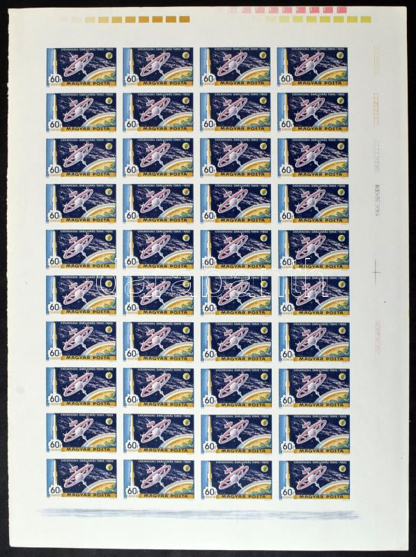 1969 A Hold meghódítása 60f gumi nélküli, vágott 40-es nyomdai ív, ívszéli nyomdai jelzésekkel