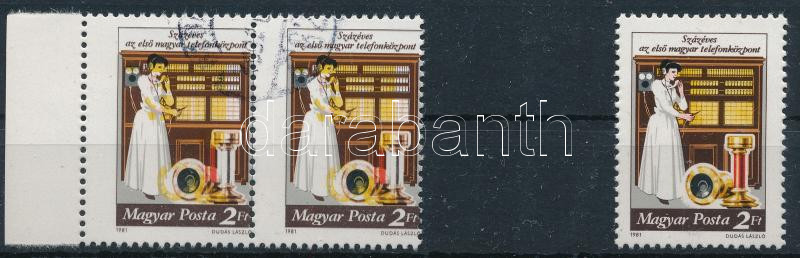 1981 100 éves az első magyar telefonközpont ívszéli pár a sárga és a piros szín jelentős elcsúszásával + támpéldány