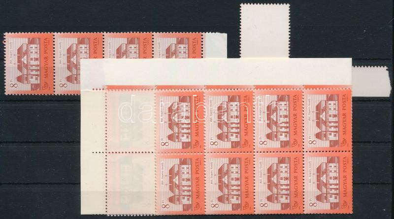 1986 Kastélyok 8Ft 38-as ívdarab hajtva + négyescsík fényes gumival + támpéldány olcsóbb változatban