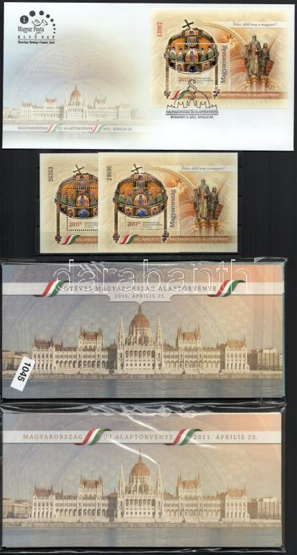 2011-2016 Magyarország új alaptörvénye blokk + kristályos blokk FDC-n + kristályos blokk eredeti tokban + felülnyomott blokk + felülnyomott kristályos blokk eredeti tokban + felülnyomott blokk FDC-n + üres nagyméretű tok