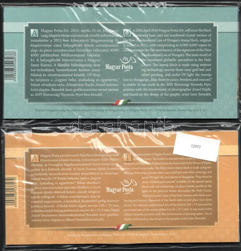 https://www.darabanth.com/en/514-Auction-philately-postcards-numismatics-artwork-books-colletibles-jewelry/515.0/Hungarian-philately-and-postal-history/Issues-between-2010-2019~65/2011-2016-Magyarorszag-uj-alaptorvenye-blokk-plus-kristalyos-blokk-FDC-n-plus-kristalyos-blokk-ered~II3471500
