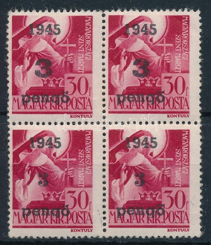 Nagyvárad I. 1945 Szent Margit 3P/30f négyestömb (saroktörések / folded corners)
