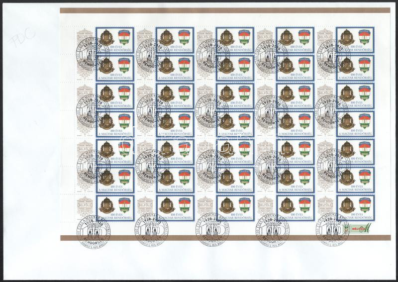 2020 100 éves a Magyar Rendőrség promóciós teljes ív FDC-n