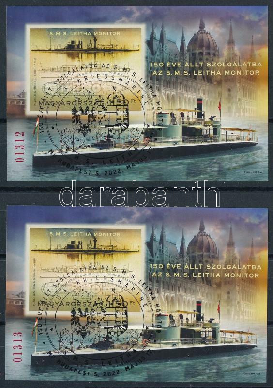 2022 150 éve állt szolgálatba az S.M.S. Leitha Monitor 2 db sorszámkövető vágott blokk