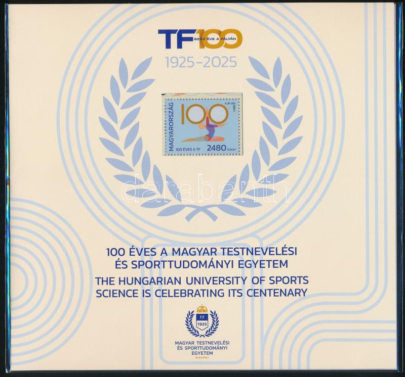 Description: 2025 Testnevelési Egyetem bélyegszet benne fogazott, vágott és feketenyomat blokk / Sports University block perforated, imperforate and blackprint in presentation pack