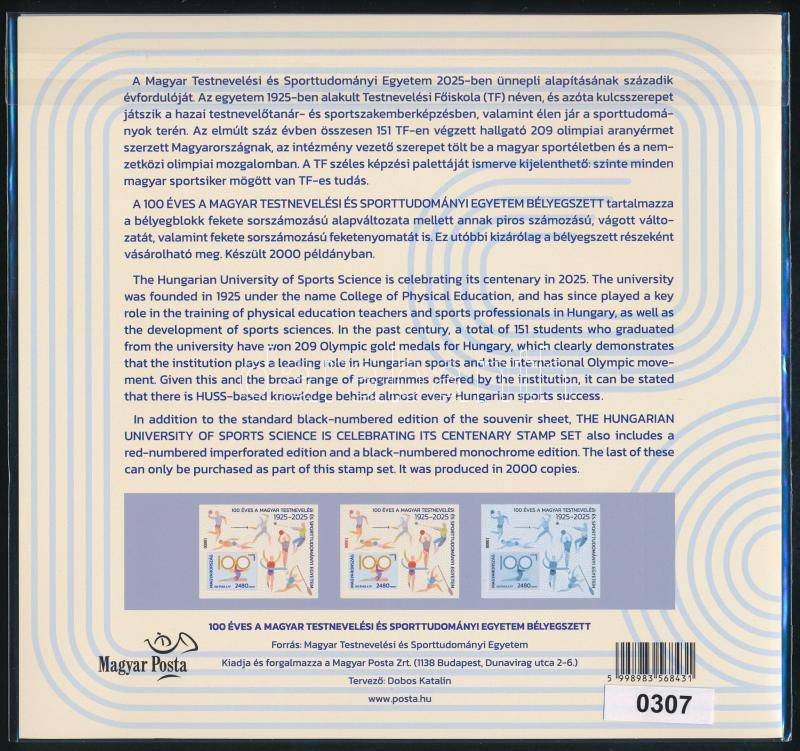 2025 Testnevelési Egyetem bélyegszet benne fogazott, vágott és feketen... https://www.darabanth.com/en/514-Auction-philately-postcards-numismatics-artwork-books-colletibles-jewelry/515.0/Hungarian-philately-and-postal-history/New-issues-from-2020~66/2025-Testnevelesi-Egyetem-belyegszet-benne-fogazott-vagott-es-feketenyomat-blokk-Sports-Unive~II3456345