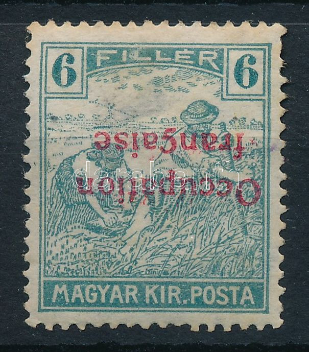 Arad 1919 Arató 6f fordított felülnyomással, Bodor vizsgálójellel (papírelvékonyodás / thin paper)