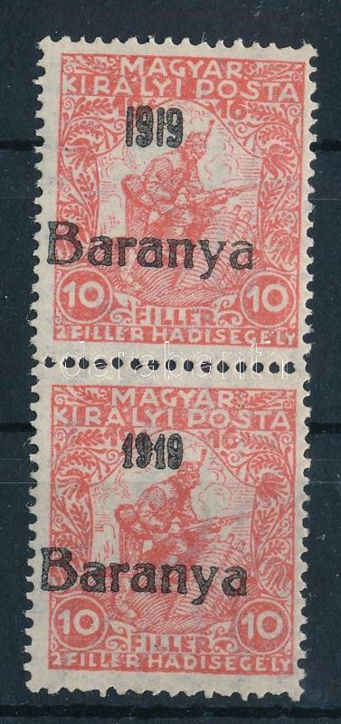 Baranya I. 1919 Hadisegély III. 10f függőleges pár, az alsó bélyeg antikva évszámmal, Bodor vizsgálójellel
