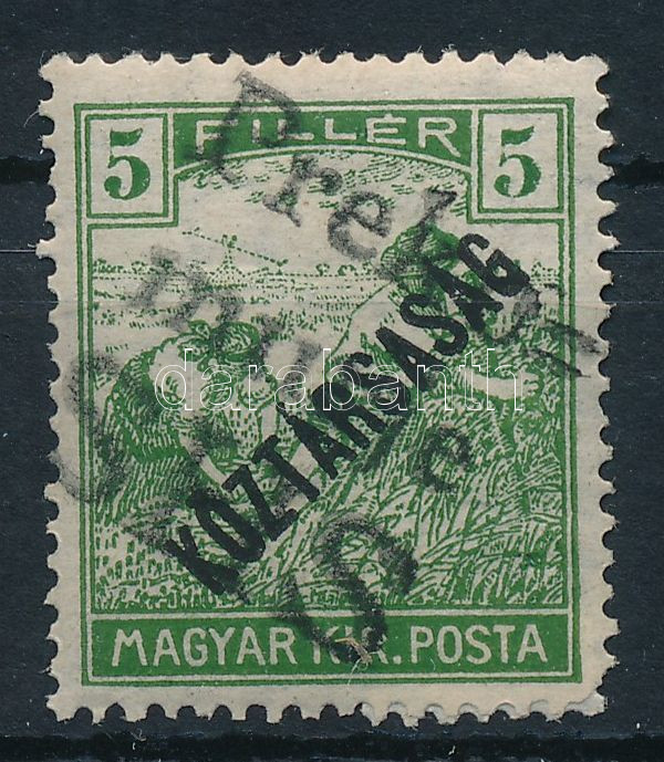 Lendvavásárhely 1919 Arató/Köztársaság 5f magánkiadású bélyeg (betapadás) / private issue (gum disturbance)