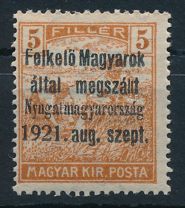 Nyugat-Magyarország I. 1921 Arató 5f próbanyomat