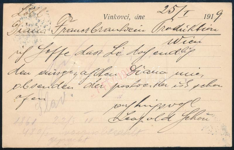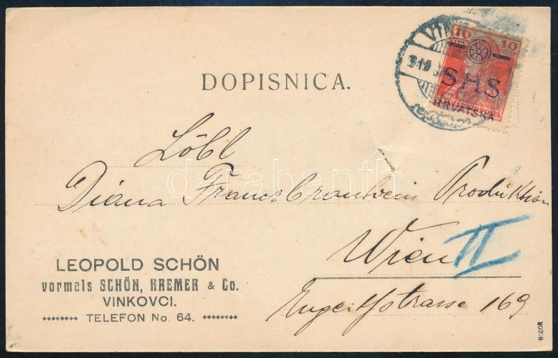 SHS 1918 Levelezőlap Károly 10f bérmentesítéssel Bécsbe küldve, Bodor ...