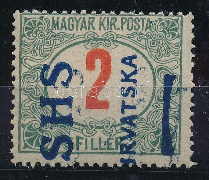 SHS 1919 Portó 2f eltérő, Arató típusú, részben, halványan kettős felülnyomattal, Bodor vizsgálójellel