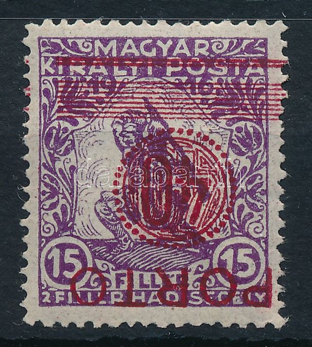 https://www.darabanth.com/en/514-Auction-philately-postcards-numismatics-artwork-books-colletibles-jewelry/515.0/Hungarian-philately-and-postal-history/Occupation-and-local-issues-1919-1921-with-guarantee~50/Temesvar-1919-Hadisegely-Porto-15f-piros-3Cstrong3Eforditott-3Cstrong3Efelulnyomassal-Bodor-viz~II3460833
